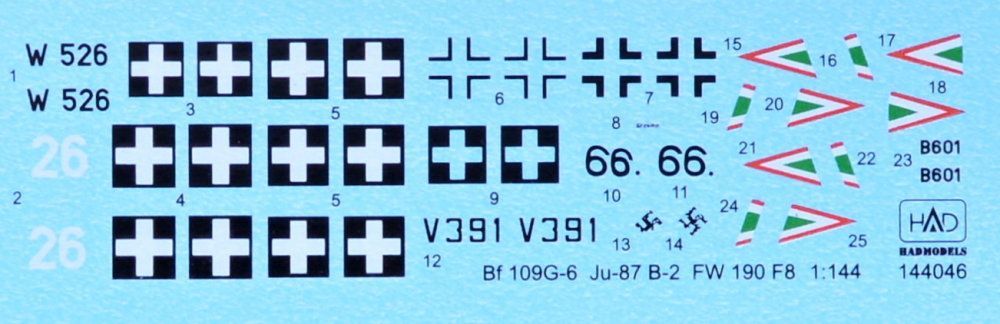 1:144 Decal Bf 109G-6,Ju-87 B-2, Fw-190 F-8 Part 1