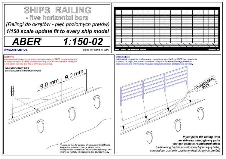 1:150 Ship railing - five horizontal bars