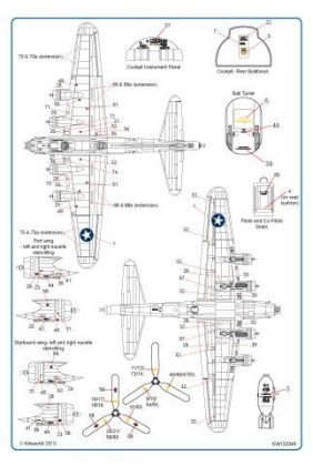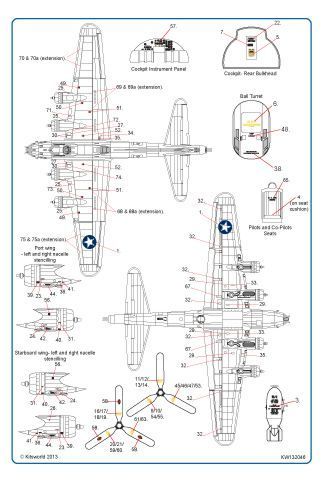 B-17F Comprehensive General stencilling including Cockpit instrumentation, Fuel tank hatch info, Propeller logos, Black walkway lines, Life raft & data panels - Type 1 Tail and fuselage insignia and more!