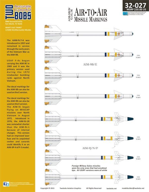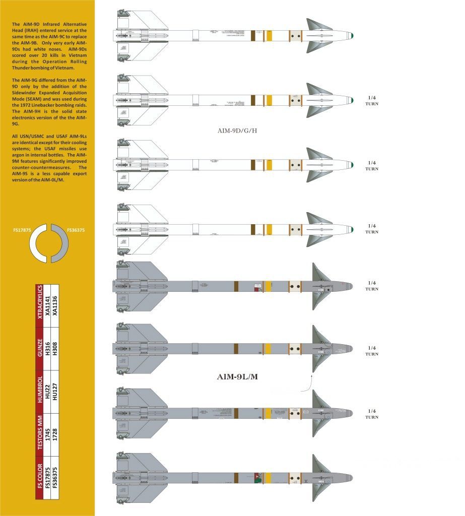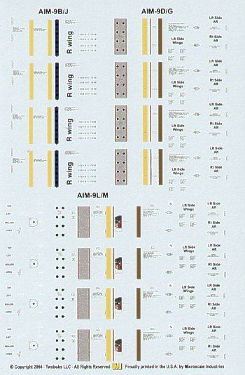 1:32 US Air-to-Air Missile Markings AIM-9B/D/G/J/L/M