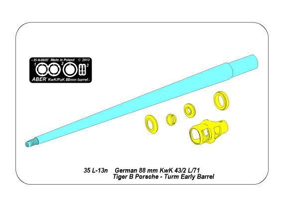 1:35 88 mm Kwk 43/2 L/71 barrel for German Heavy Tank Tiger B Porsche-Turm, with Early Muzzle Brake