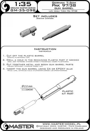 1:35 German 7,5cm Pak 97/38 gun barrel (for Italeri, Dragon kits)
