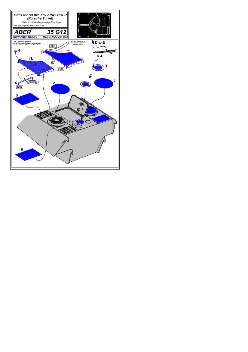 1:35 Grilles for german tank Sd.Kfz. 182 King tiger (Porsche Turret)