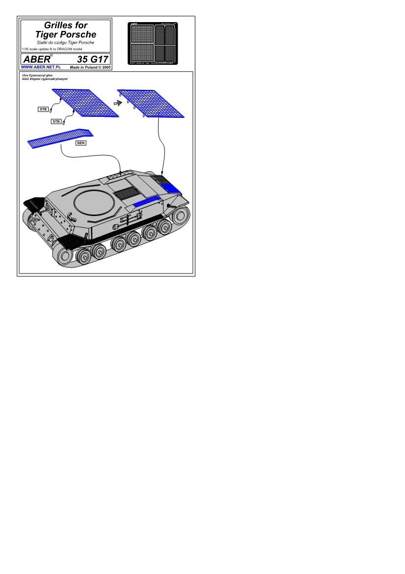 1:35 Grilles for german tank Tiger Porsche
