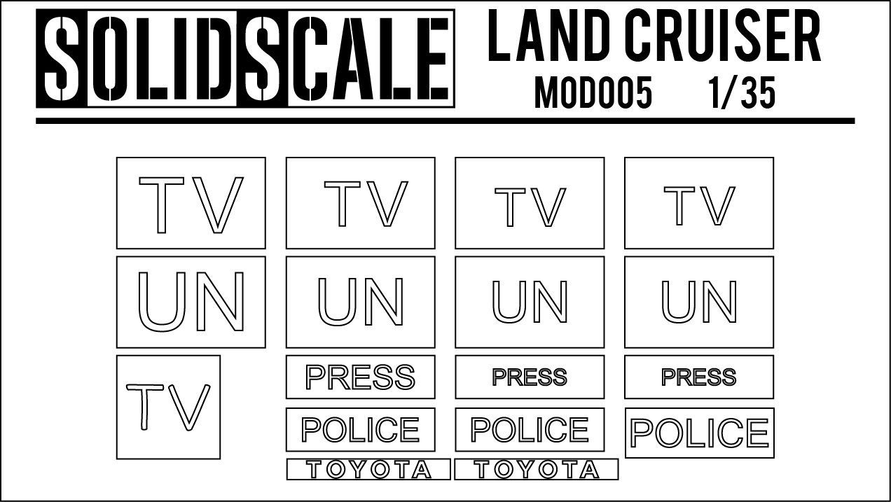 Set to represent a markings on Landcruiser vehicles