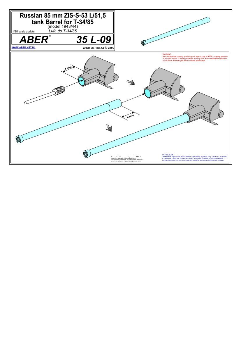 1:35 Russian 85mm ZIS-S-53 L/51,5 tank Barrel for T-34/85