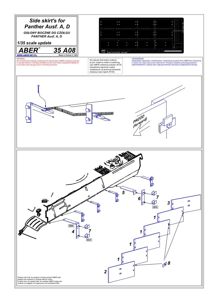 1:35 Side skirts for Panther Ausf. A, D, Bergepanther