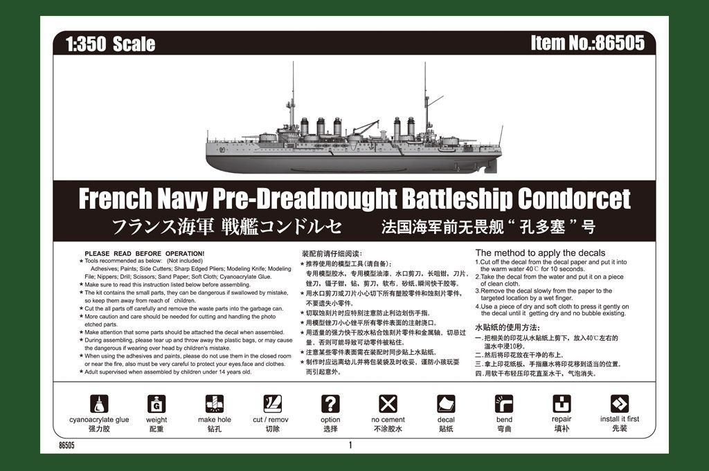 1:350 French Navy Pre-Dreadnought Battleship Condorcet
