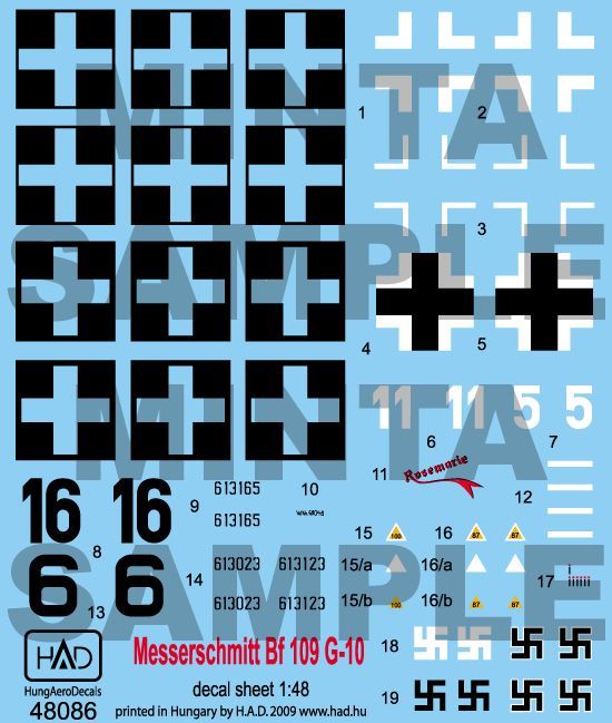 1:48 Decal Messerschmitt Bf 109 G-10