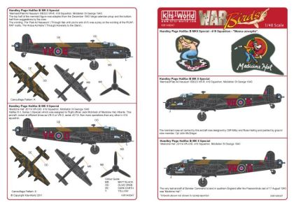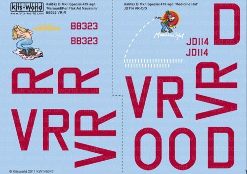 In April 1943, Edmonton born Sgt Pilot Bill Gray and his crew received a new Halifax B Mk II (Special), coded VR-R, serial BB323, which they first flew on their sixteenth operation and for the remaining trips of their tour which they completed in June 1943. The mermaid nose art carried by this aircraft was designed by Cliff Wilby and Russ Harling and painted by ground crew member, Cpl John McGregor. The top half of the mermaid figure was adapted from the December 1943 Varga calendar pinup and the bottom half from suggestions by the crew.