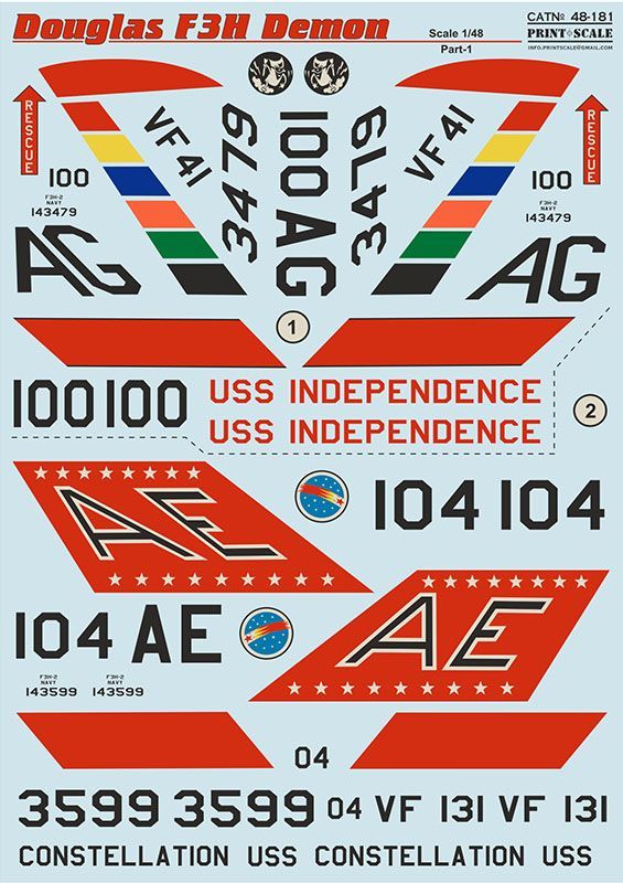 1. McDonnell F3H-2 Demon (F-3B), VF-41 "Black Aces", US Navy, 100/AG (BuNo.143479) CVA-62 USS Independence, 1959.