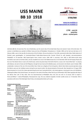 1:700 Battle ship USS Maine BB 10 1918