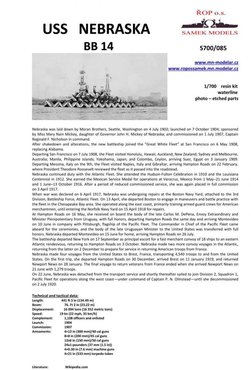 1:700 Battle ship USS Nebraska BB 14  1918