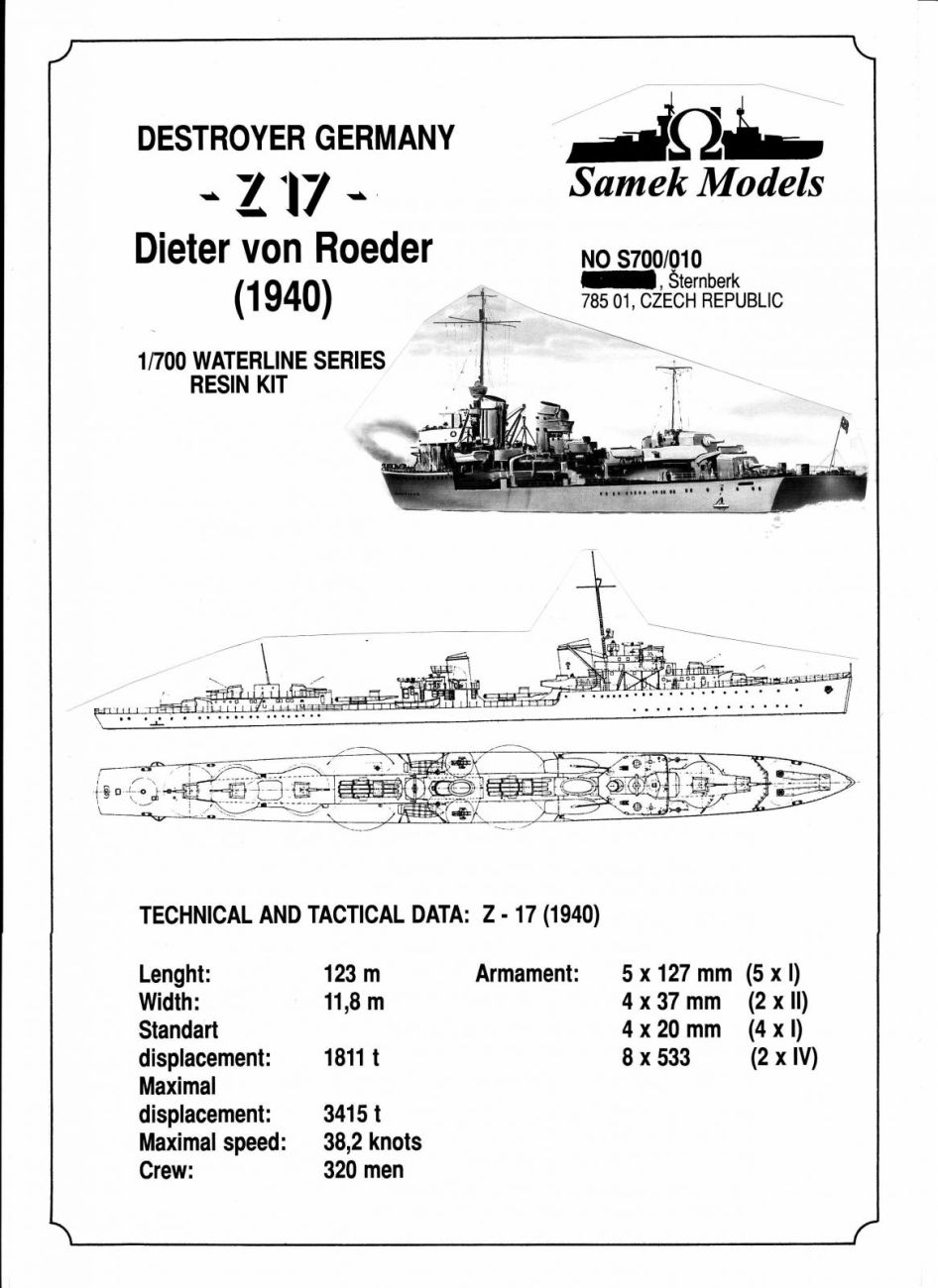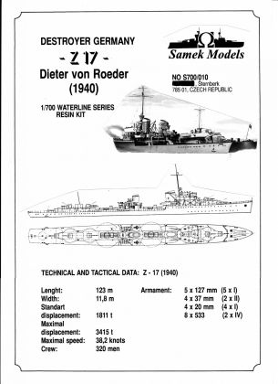 1:700 Destroyer Z - 17 Dieter von Roeder Germany 1940