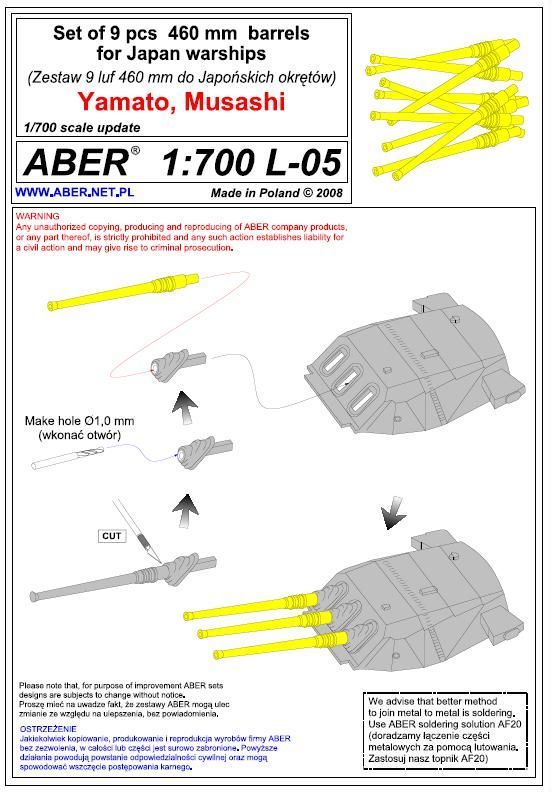 1:700 Set of 9 pcs 460 mm barrels for ships Yamato, Musashi