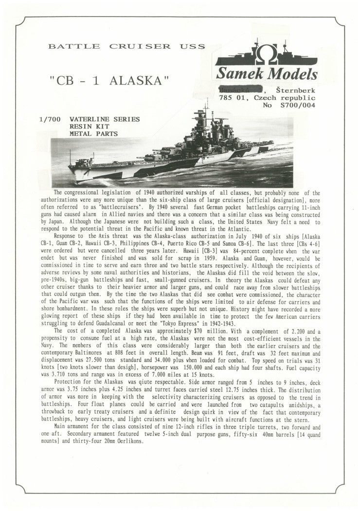 1:700 USS Battle cruiser Alaska 1945