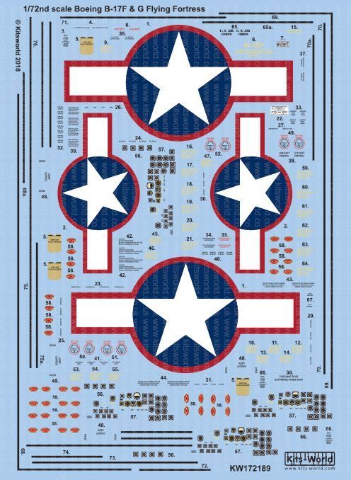1:72 Boeing B-17F/B-17G Flying Fortress Red Outlined Stars & Bars