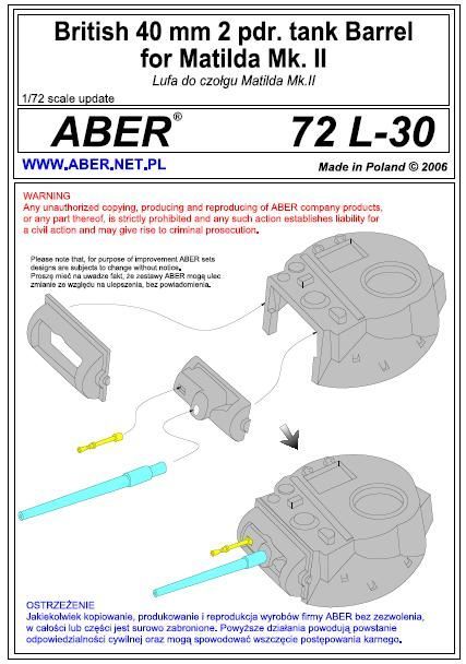 1:72 British 40 mm 2 pdr. Tank barrel for Matilda Mk.II