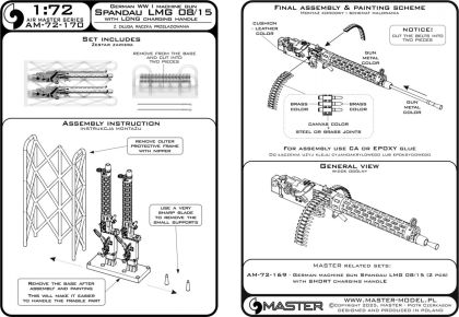 1:72 German WW I machine gun Spandau LMG 08/15 (2 pcs) - with LONG charging handle - complete guns incl. 3D resin & brass parts