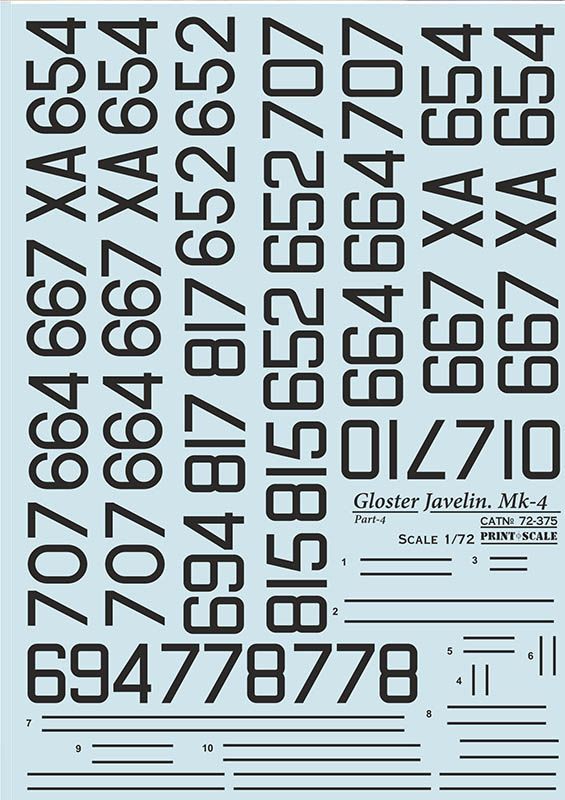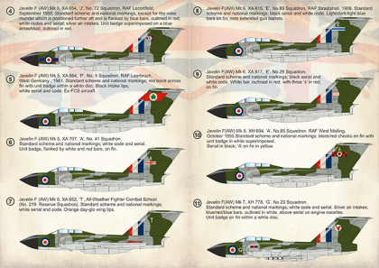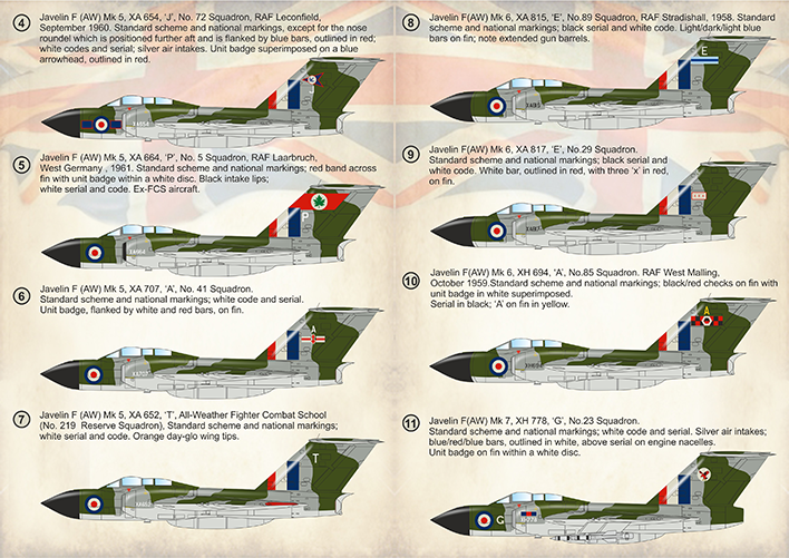 6. Javelin F (AW) Mk 5, XA 707, ‘A’, No. 41 Squadron. Standard scheme and national markings; white code and serial. Unit badge, flanked by white and red bars, on fin.
