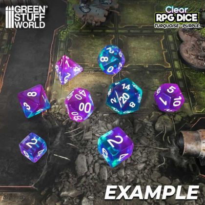12x D6 16mm Dice - Clear Turquoise/Purple