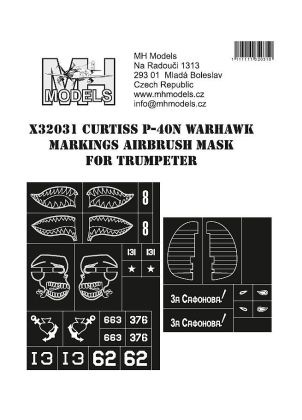 1:32 Curtiss P-40N Warhawk Markings Airbrush mask for Trumpeter