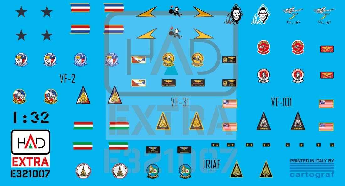 1:32 F-14A/D helmet and dress sewing markings VF-2 VF-101 VF-31 decal sheet