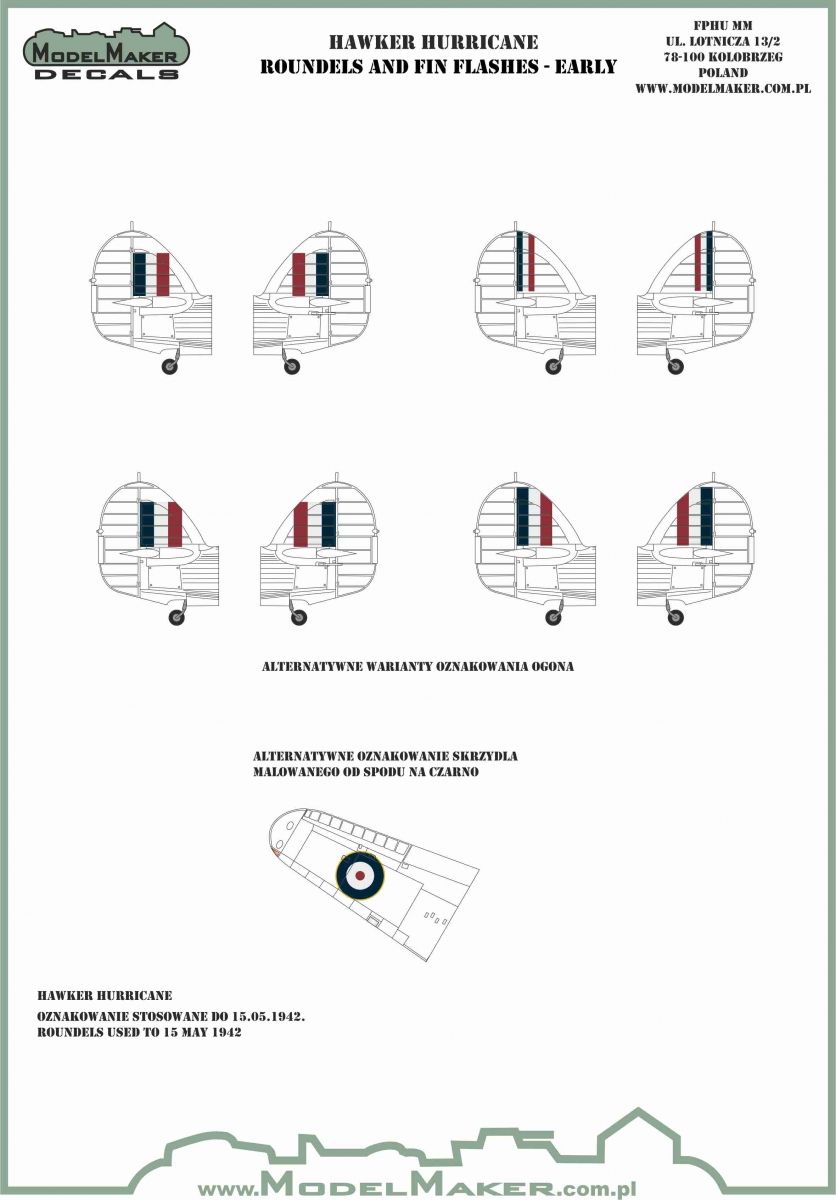 1:32 HAWKER HURRICANE ROUNDELS AND FIN FLASHES - EARLY