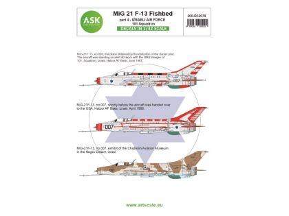 - MiG-21F-13, no.007, the plane obtained by the defection of the Syrian pilot. The aircraft was standing on alert at Hazor with the ORA Mirages of 101. Squadron, Izrael, Hatzor AF Base, June 1967.