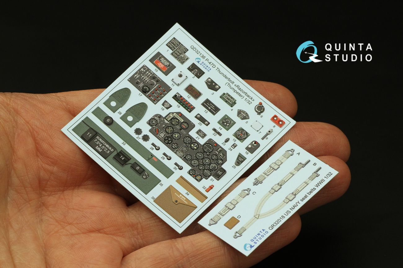 1:32 P-47D Razorback 3D-Printed & coloured Interior on decal paper (Trumpeter)