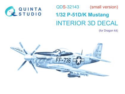 1:32 P-51D/K Mustang 3D-Printed & coloured Interior on decal paper (Dragon) (Small version)