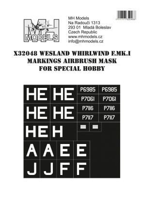 1:32 Westland Whirlwind F.MK.I Markings airbrush mask for Special Hobby