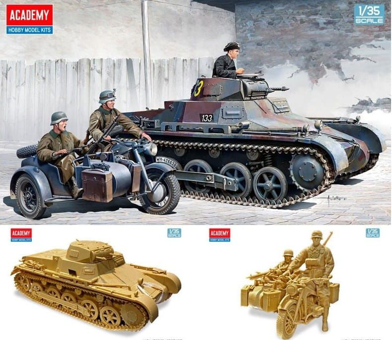 1:35 German Panzer I Ausf.B And Motorcycle