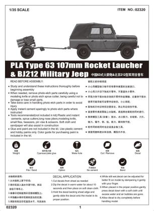 1:35 PLA Type 63 107mm Rocket Laucher & BJ212 Military Jeep