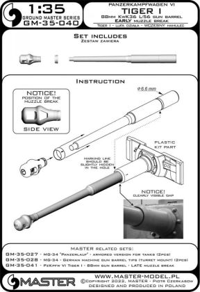 1:35 PzKpfw VI Tiger I - 88mm KwK36 L/56 gun barrel – EARLY muzzle break