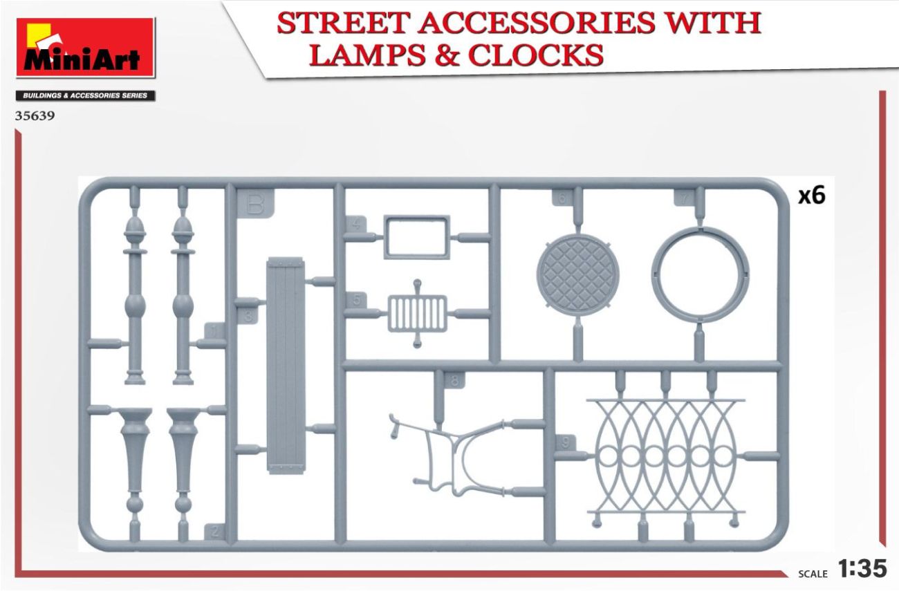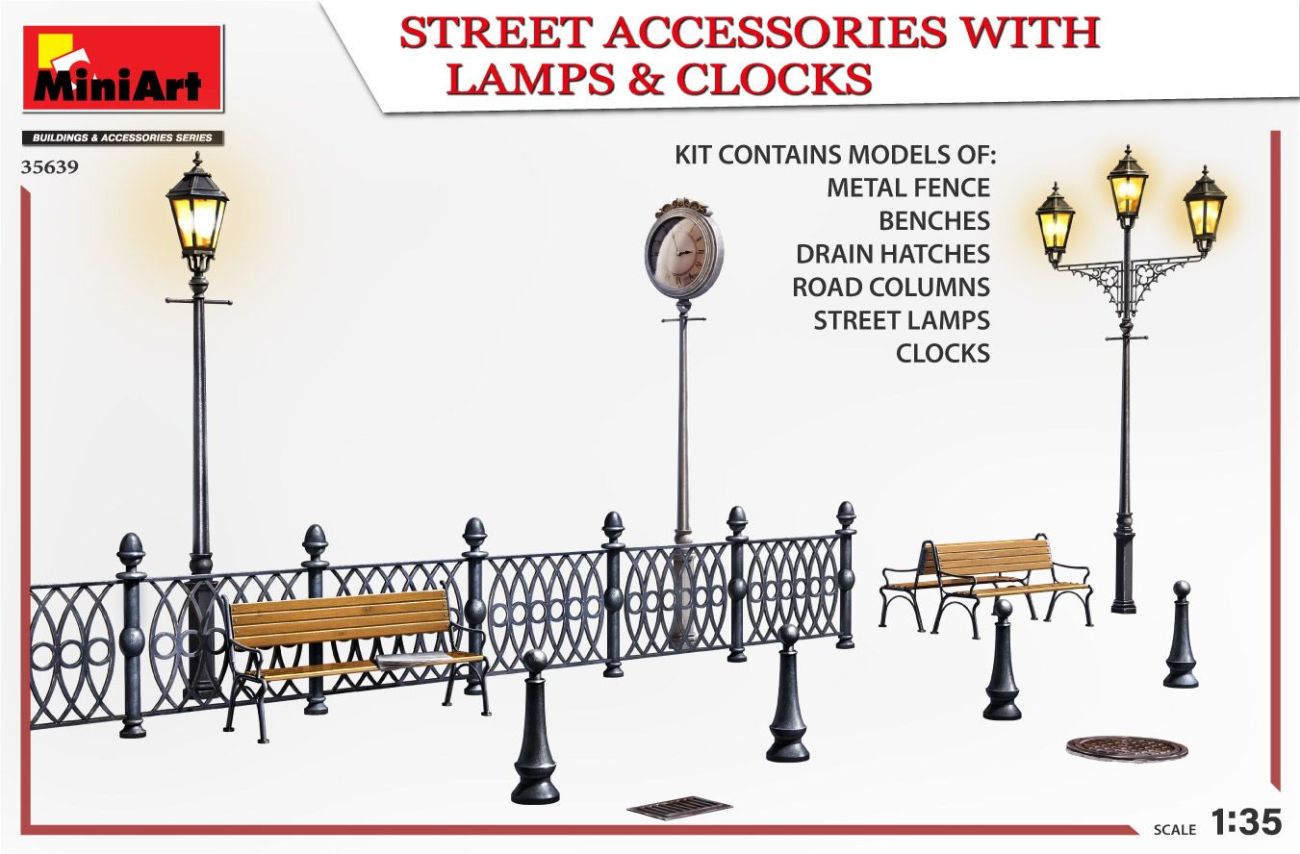 1:35 STREET ACCESSORIES WITH LAMPS & CLOCKS