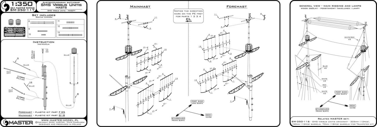 1:350 SMS Viribus Unitis - masts, yards and other turned and resin parts set (for Trumpeter kit)