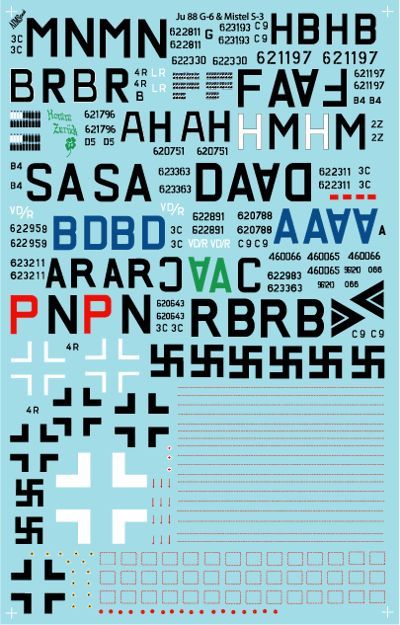 1:48 Junkers Ju-88 G Decals (designed to be used with Dragon kits)