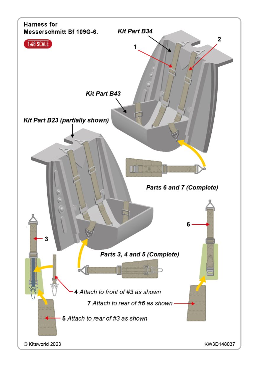 1:48 Messerschmitt Bf-109 G-6 - Seat Harness Set 3D (for Tamiya 61117 kit)
