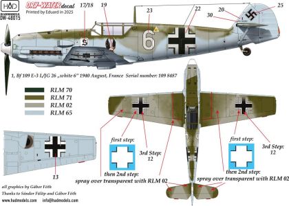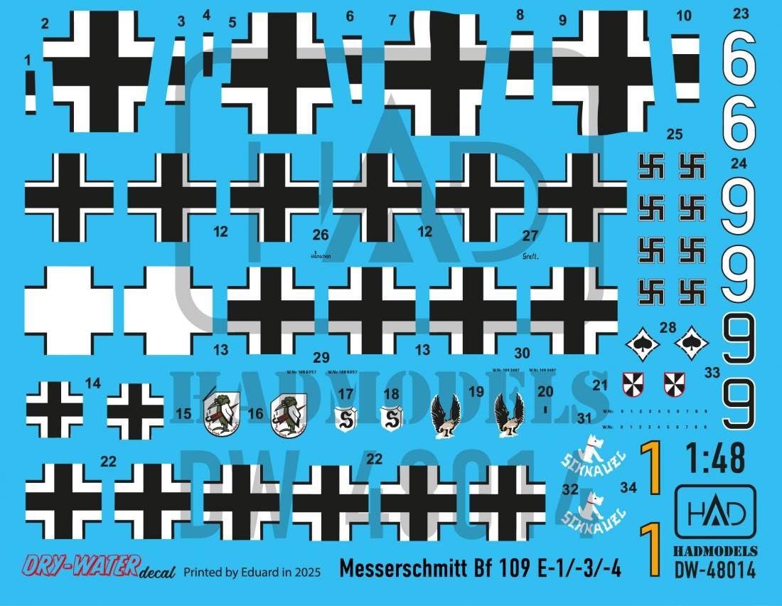 1:48 Messerschmitt Bf 109 E-1; E-2;E-3 decal sheet