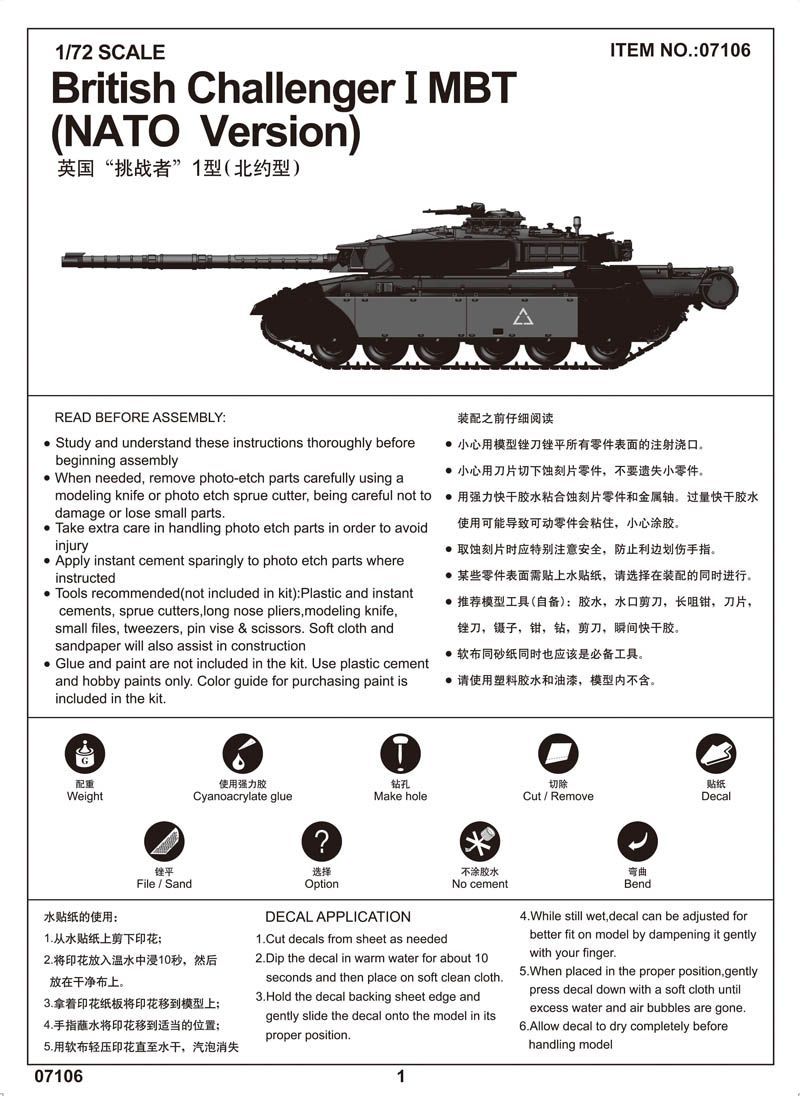 1:72 British Challenger I MBT (NATO Version)