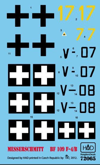 1:72 Decal Bf 109 F-4/b (yellow 17, yellow 7)