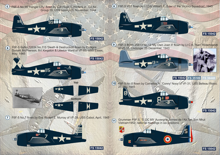 11. Grumman F6F 5, ‘S’.GC ll/9 ‘Auvergne, Armee de l’Air,Tan Son Nhut  Vietnam1952; national markings in six positions.