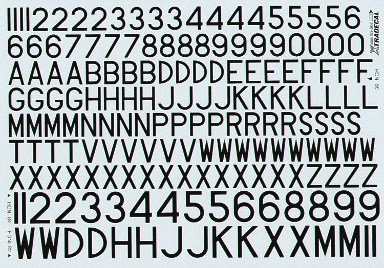 1:72 RAF Post War Serial Letters and Numbers, Black. 16
