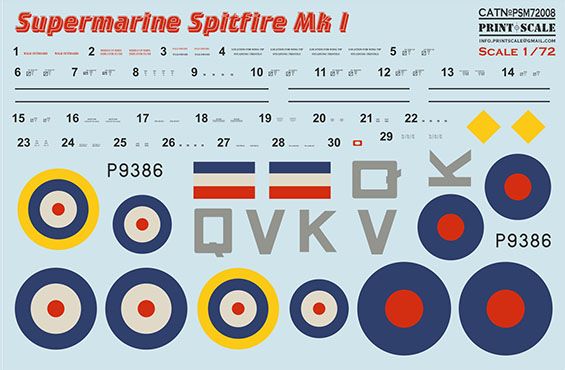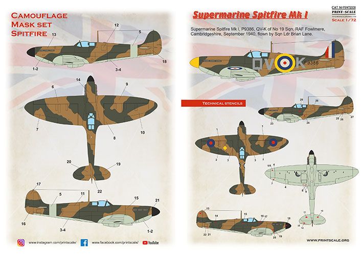 1:72 Supermarin Spitfire Mk.1 mask + decals