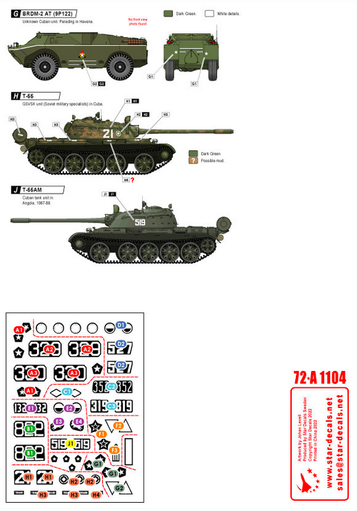 1:72 Tanks & AFVs in Cuba # 2. T-34/85, IS-2M, T-54A, T-55, T-55A, T-62A, ZSU-57-2, BRDM-2 (9P122).