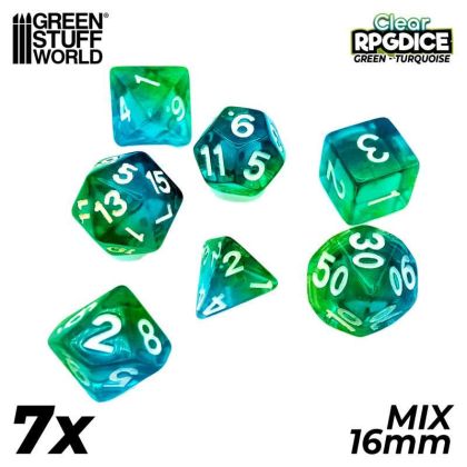 7x Mix 16mm Dice - Green - Turquoise