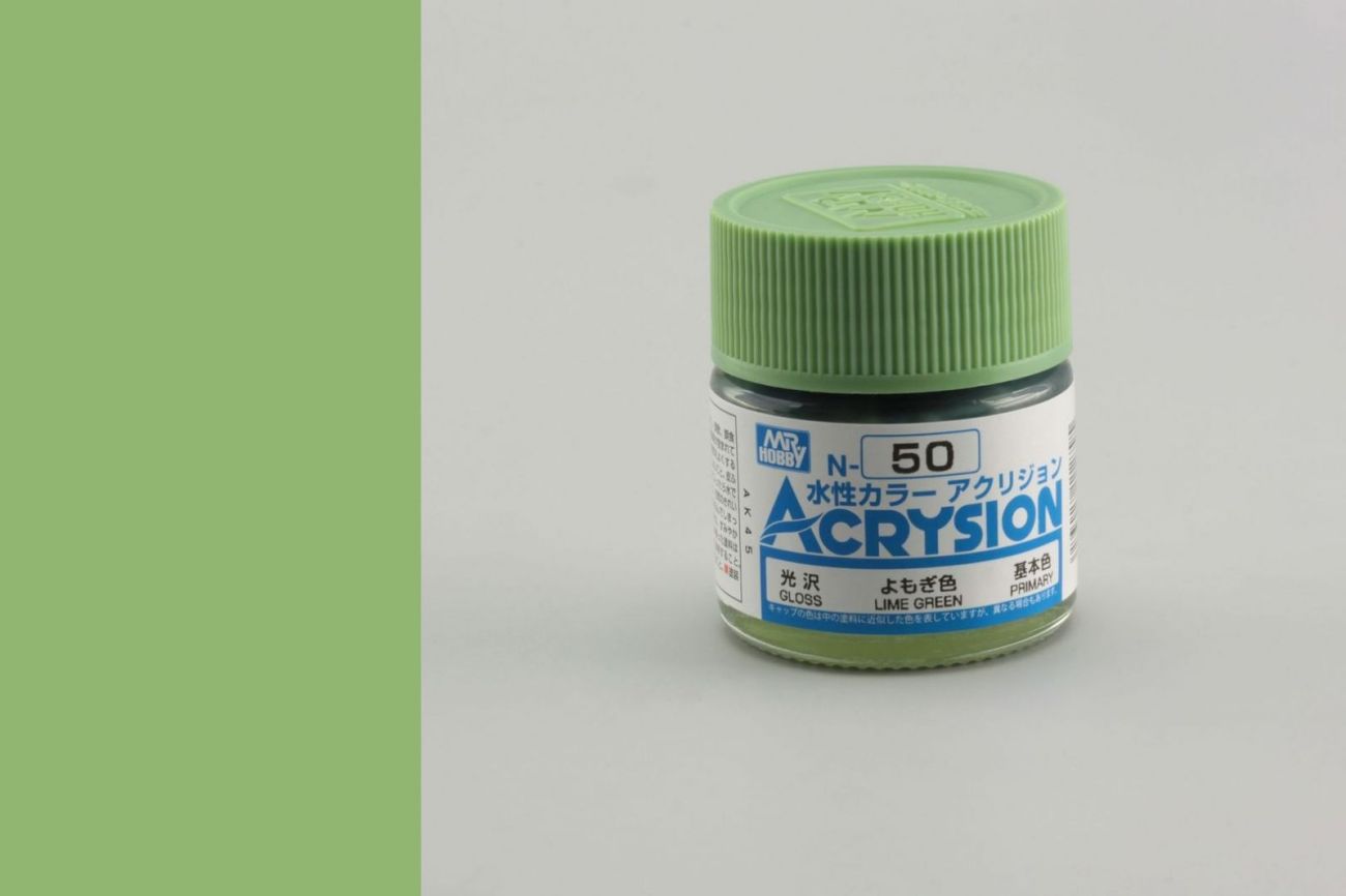 ZNAČENÍ V modrém poli nad názvem řady ACRYSION je v bílém rámečku číslo barvy. V bílém poli pod názvem řady uprostřed je název barvy. Vlevo od názvu je uvedeno, zda je barva matná (FLAT), lesklá (GLOSS), pololesklá (SEMI-GLOSS) nebo metalíza (METALIC). Vpravo od názvu je uvedeno užití. PRIMARY=základní barvy, AIRCRAFT=letadla, CAR=auta, TANK=tanky a bojová technika, SHIP=lodě, WEATHERING=patinovací barvy. V případě letadel, bojové techniky a lodí je uveden i stát a období používání barvy.