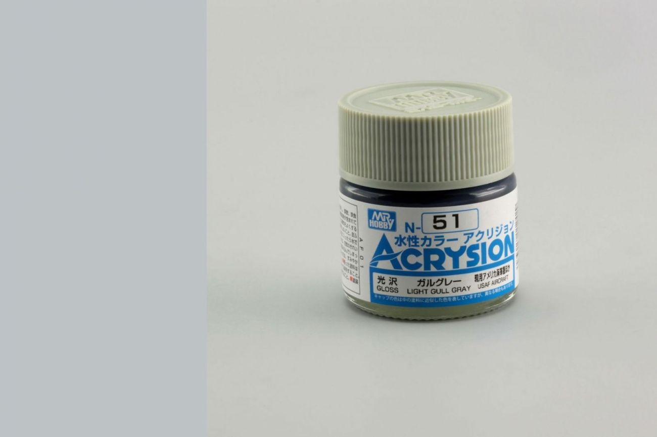 ZNAČENÍ V modrém poli nad názvem řady ACRYSION je v bílém rámečku číslo barvy. V bílém poli pod názvem řady uprostřed je název barvy. Vlevo od názvu je uvedeno, zda je barva matná (FLAT), lesklá (GLOSS), pololesklá (SEMI-GLOSS) nebo metalíza (METALIC). Vpravo od názvu je uvedeno užití. PRIMARY=základní barvy, AIRCRAFT=letadla, CAR=auta, TANK=tanky a bojová technika, SHIP=lodě, WEATHERING=patinovací barvy. V případě letadel, bojové techniky a lodí je uveden i stát a období používání barvy.