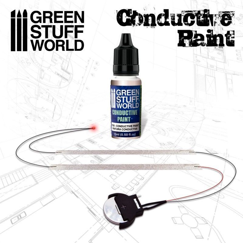 Highly conductive waterbased paint with silver specially formulated for model and diorama building, or in electronics such as LED connections, circuit paths, repairing circuit boards and others. Can be used on a variety of surfaces including plastic, resins, metal, paper and wood.
